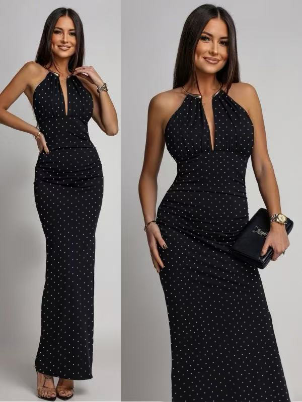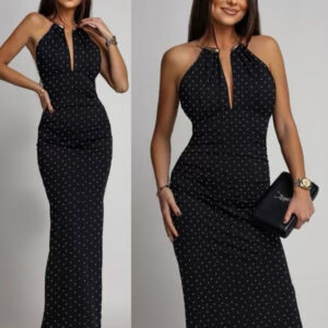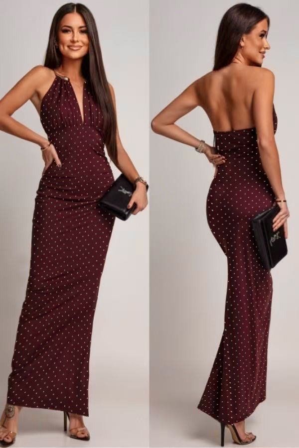 Φόρεμα μάξι ελαστικό εξώπλατο με στρας