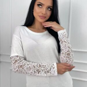 Μπλούζα ελαστική με δαντέλα στα μανίκια