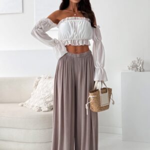 Παντελόνα ψηλόμεση με λάστιχο στη μέση